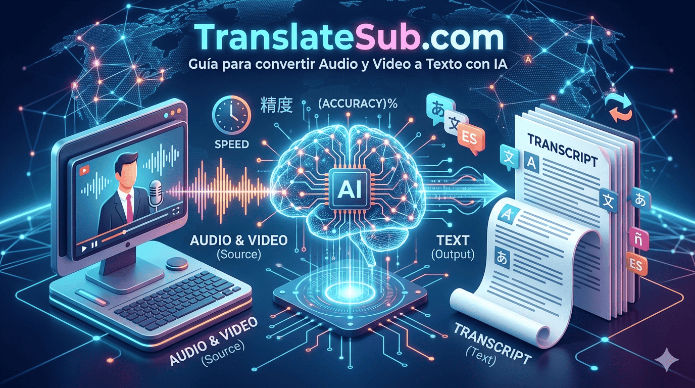 En el ecosistema digital de hoy, la capacidad de transformar archivos multimedia en contenido escrito es una ventaja competitiva esencial. Ya seas un creador de contenido, un estudiante o un profesional de negocios, TranslateSub pone a tu alcance una plataforma potente e intuitiva que utiliza inteligencia artificial de vanguardia para transcribir tus archivos con una precisión asombrosa.